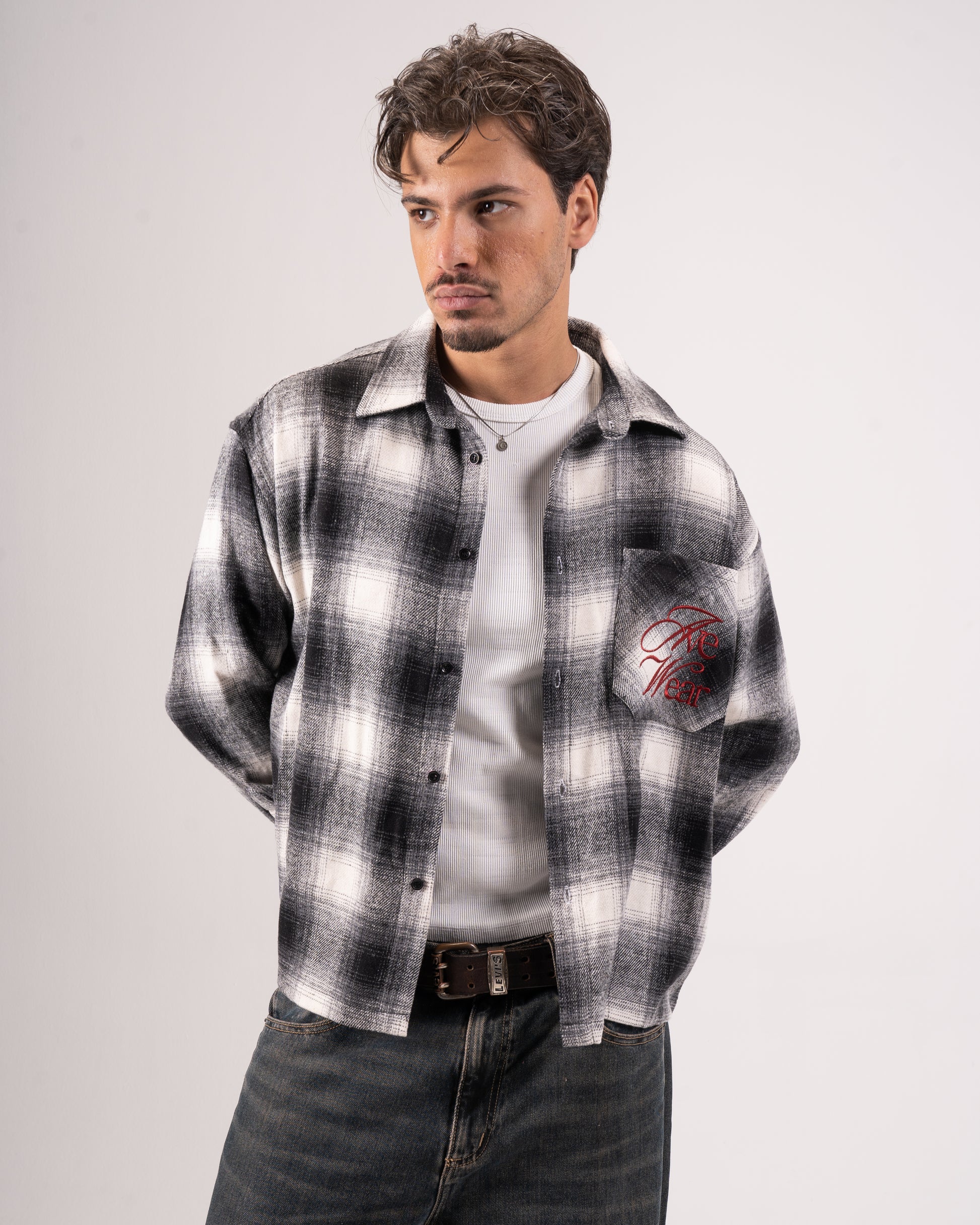 A unisex, boxy-fit overshirt made from mid-weight broadcloth flannel. Designed for layering or standalone wear, it features a timeless brown plaid pattern and signature Ave Wear embroidery